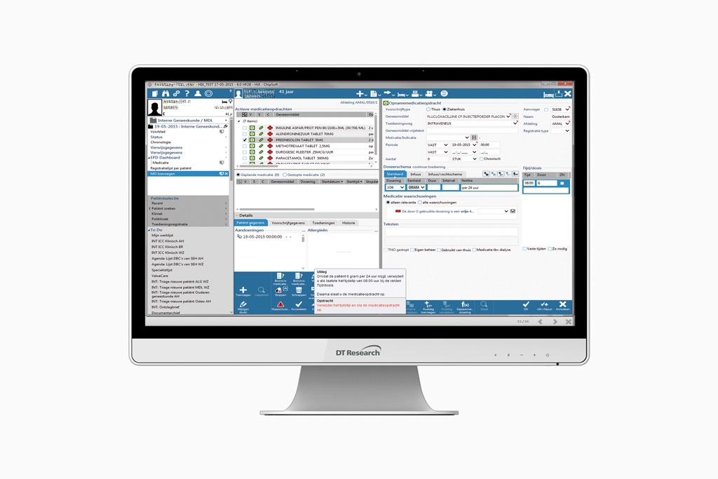 Der 704M / 707M von DT Research ist ein schlanker, antimikrobieller 24”/27”-Touchscreen, der die Systemintegration für Anwendungen im Gesundheitswesen erleichtert. Dieser medizinische Monitor mit WLAN-Antennen und optionalen Datenerfassungsmodulen kann mit Personalcomputern, Mikro-PC oder Thin Clients verbunden werden, so dass das medizinische Personal die notwendigen Informationen optimal verwalten kann.