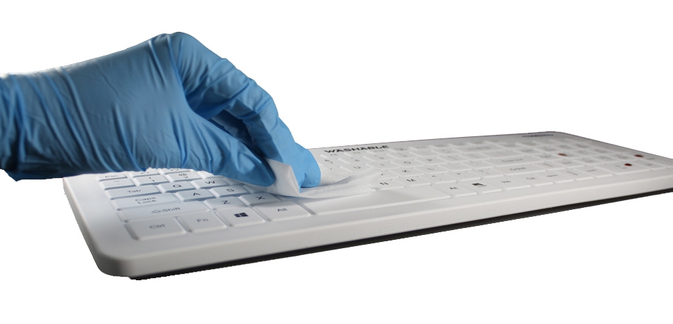 Die Tastatur Very Cool Flat ist eine großzügig bemessene, desinfizierbare Hygienetastatur für den medizinischen Bereich. Da die Elektronik im Inneren versiegelt ist, ist die Tastatur abwaschbar.