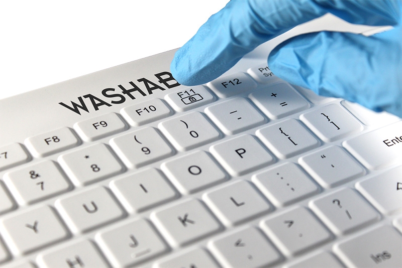 Verschmutzungen werden auf dieser weißen Hygienetastatur schnell sichtbar. Profitieren Sie von der einzigartigen Kombination aus exzellentem Tastendruckverhalten und einer leicht zu desinfizierenden Oberfläche.