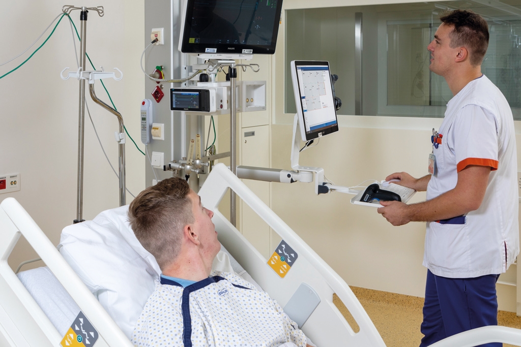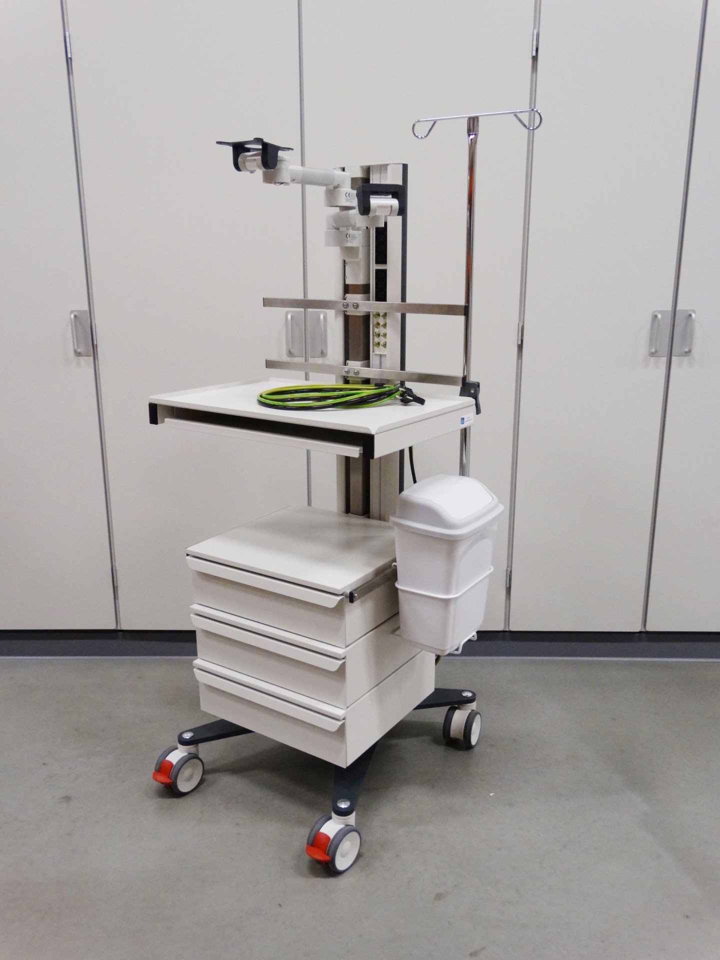 Bei den CIM med Trägersystemen mit Kabelintegration werden alle Kabel der befestigten Geräte hygienisch und ästhetisch in den Gehäusen der medizinischen Tragarme untergebracht.
