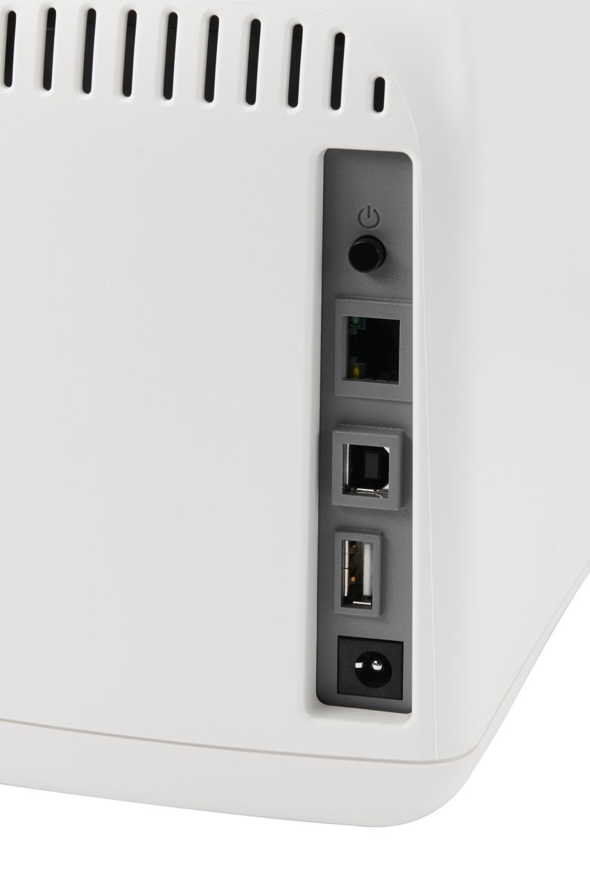 Der Drucker verfügt standardmäßig über USB, USB Host, Ethernet und Bluetooth Low Energy. Optional können Sie WLAN 5 (802.11ac) und Bluetooth4.1 verwenden. Über NFC (Print Touch) kann der Drucker mit einem mobilen Gerät bedient werden. Dabei besteht direkter Zugriff auf Instruktionsvideos.
