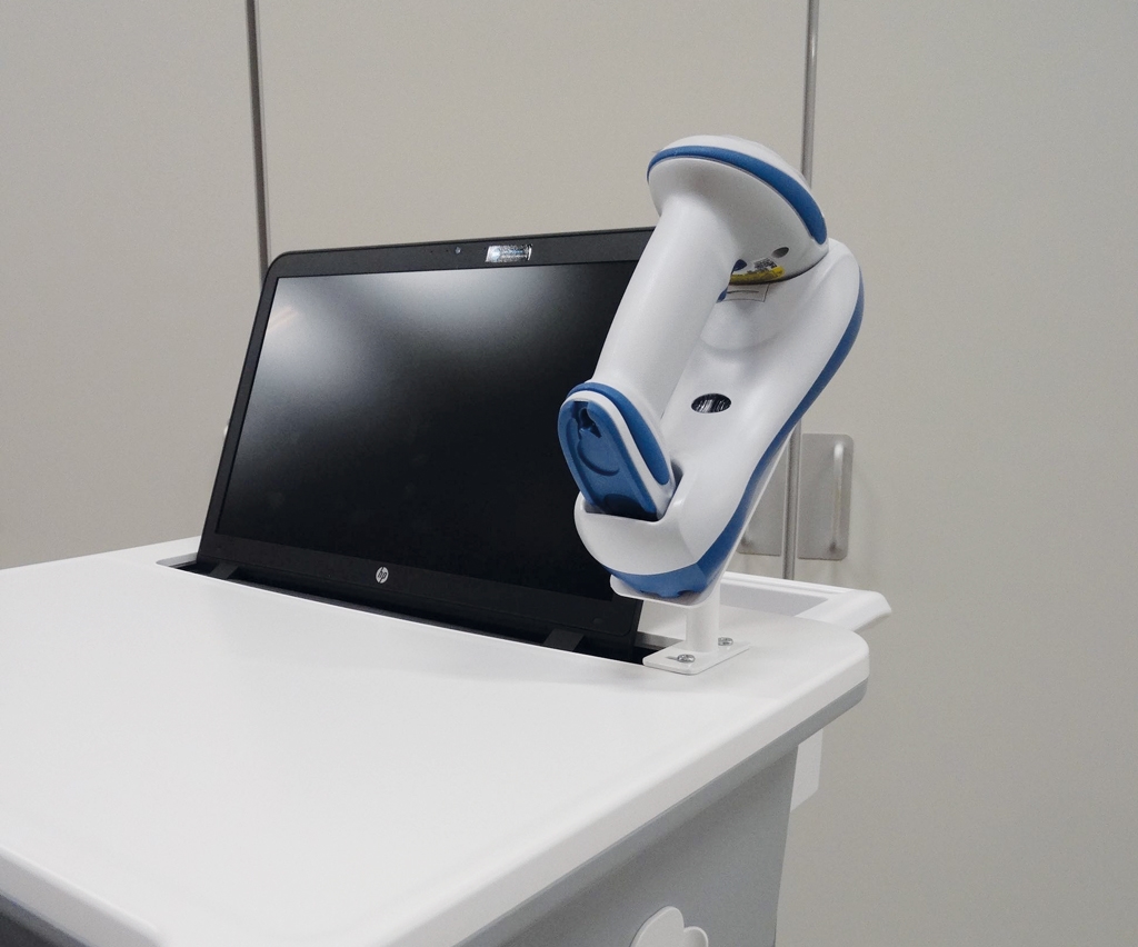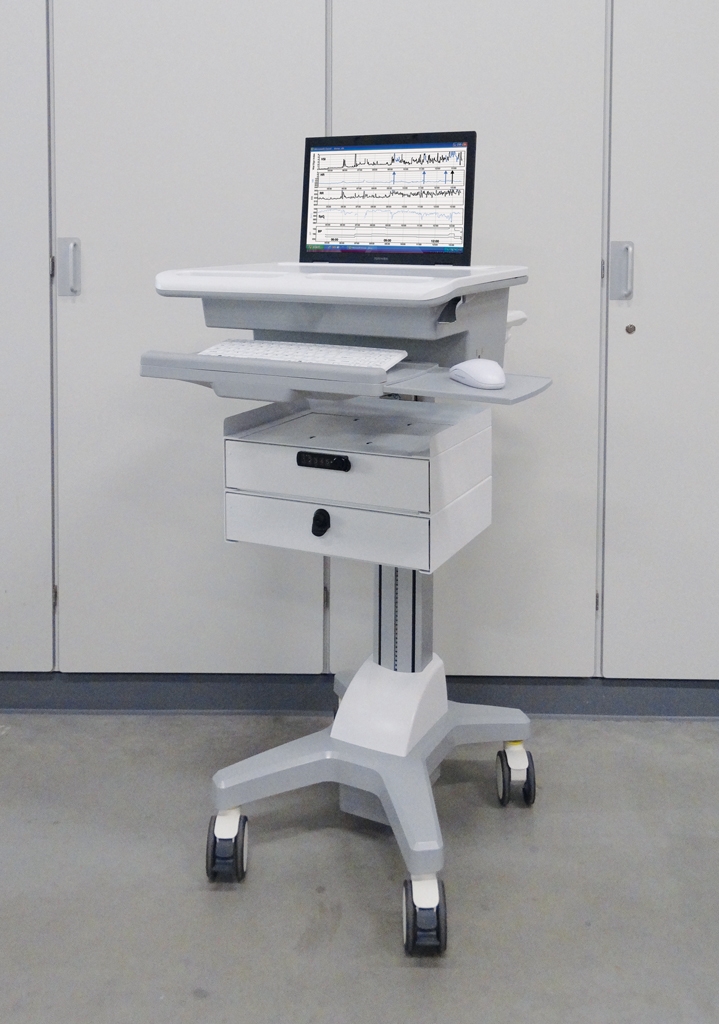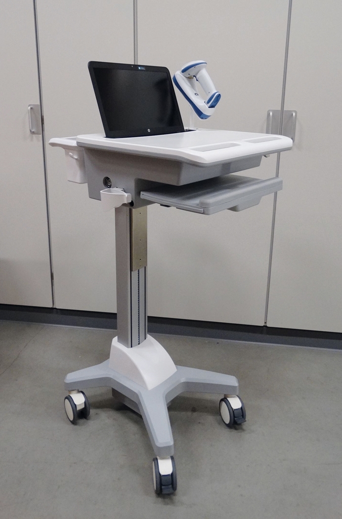 Beispiel aus der Praxis für einen All Modul IT-Visitenwagen im Spritzenraum des Sophia Kinderkrankenhauses in Rotterdam.