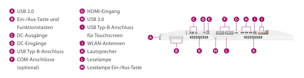 Der medizinische Monitor von DT Research integriert einen 22”- oder 24”-Bildschirm sowie im laufenden Betrieb austauschbare Batterien in einem schlanken, einfach zu montierenden und antimikrobiellen Gehäuse, um die Systemintegration für Anwendungen im Gesundheitsbereich zu erleichtern. Dieser medizinische Monitor mit integrierter LED-Leseleuchte, WLAN-Antennen und optionalen Datenerfassungsmodulen kann mit Personalcomputern, eingebetteten Controllern oder Thin Clients verbunden werden, so dass das medizinische Personal die Informationen optimal verwalten kann. Der einzigartige Stromausgang (DC-Ausgang) kann einen Thin Client mit Strom versorgen.