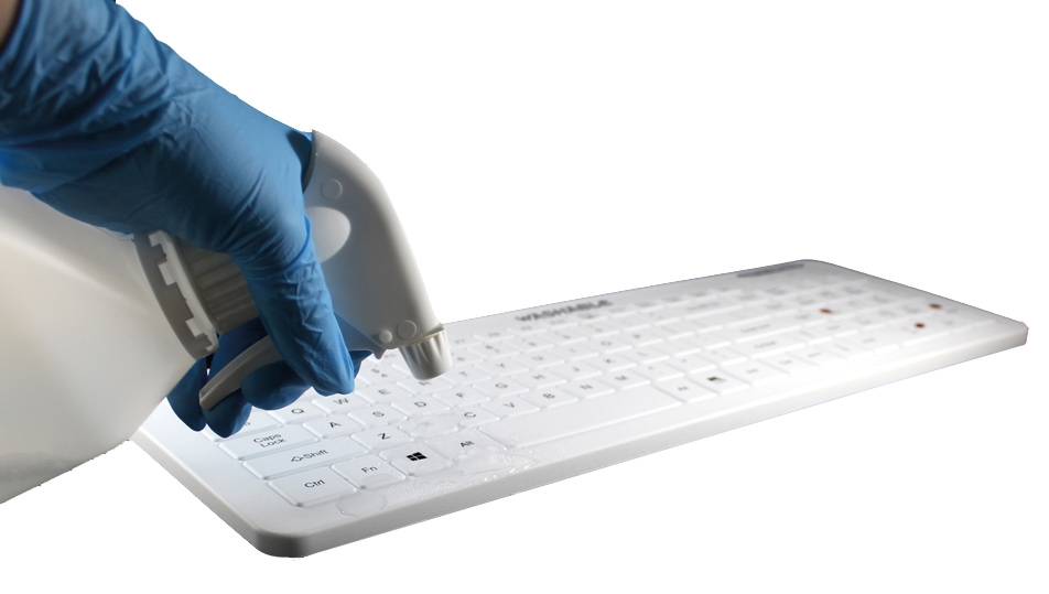 Die Tastatur Very Cool Flat ist eine großzügig bemessene, desinfizierbare Hygienetastatur für den medizinischen Bereich. Da die Elektronik im Inneren versiegelt ist, ist die Tastatur abwaschbar.