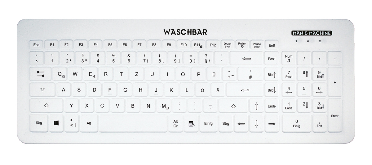 Verschmutzungen werden auf dieser weißen Hygienetastatur schnell sichtbar. Profitieren Sie von der einzigartigen Kombination aus exzellentem Tastendruckverhalten und einer leicht zu desinfizierenden Oberfläche.