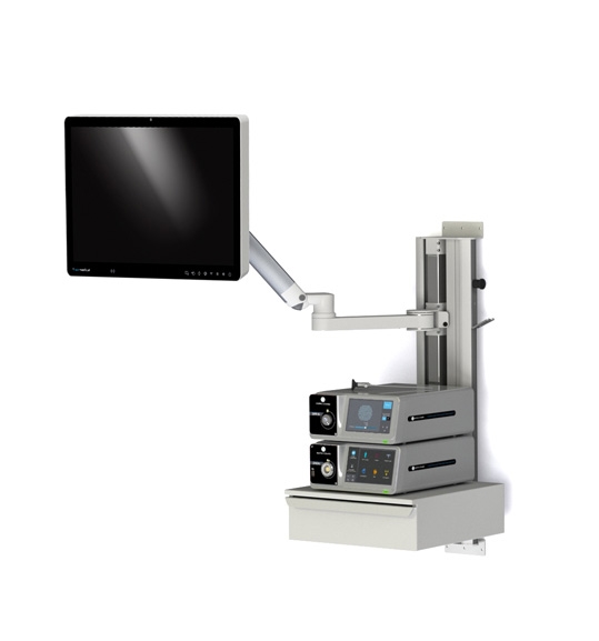 Da alle Geräte am Wandsystem befestigt sind, kann die Konfiguration auch an anderer Stelle aufgebaut werden, zum Beispiel in der Abteilung Medizintechnik. Für den Transport des Systems nach dem Aufstellen ist ein Wagen erhältlich. Dieser Wagen kann auch verwendet werden, um das System bei Wartungsarbeiten und Ausfällen schnell auszutauschen.