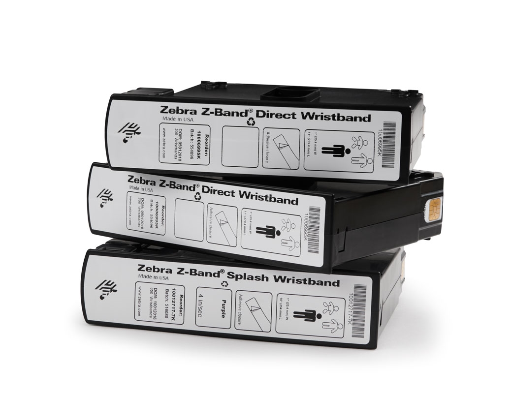 - Zebra Z-Band-Armbänder sind langlebig und leicht scanbar